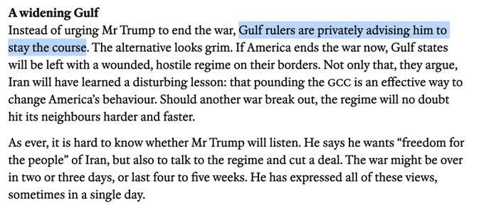 Oddly enough, however, despite outward claims that Gulf states are diplomatically pressuring Washington to cut the war short in order to stave off the coming crisis, there are reports that privately the states are doing the opposite—outlining the definition of sunk-cost fallacy: