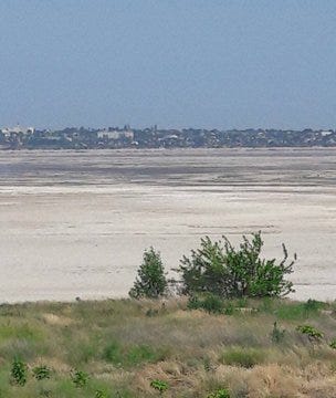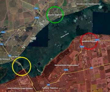 This is apparently looking from Berislav on the Ukrainian side toward the town of Kakhovka itself: