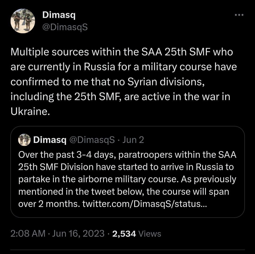 Also, last time I reported the photo of ‘Syrian troops’ possibly in the ranks of Russian VDV. I followed up and found an update from one of the Syrian war Osint guys: