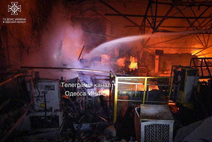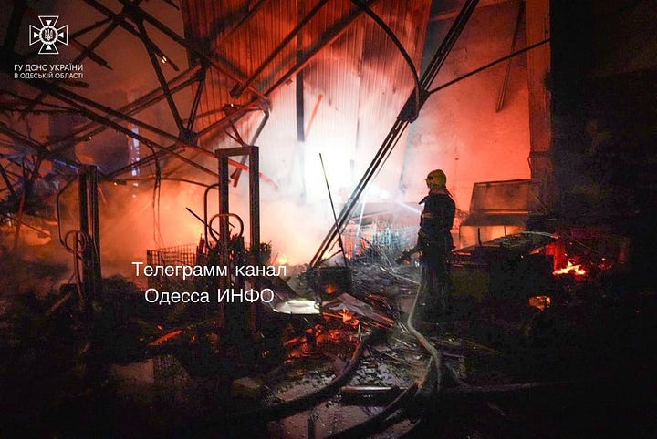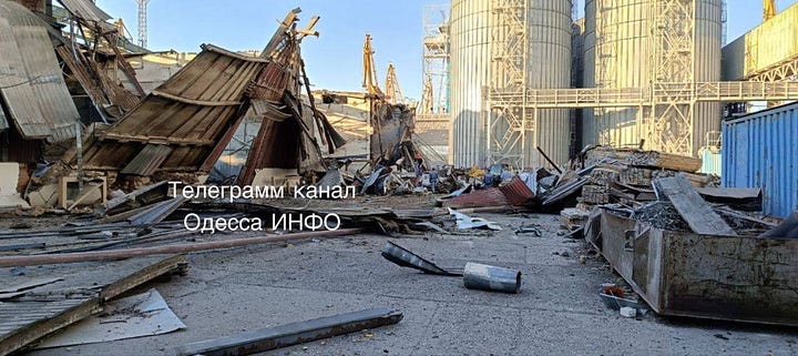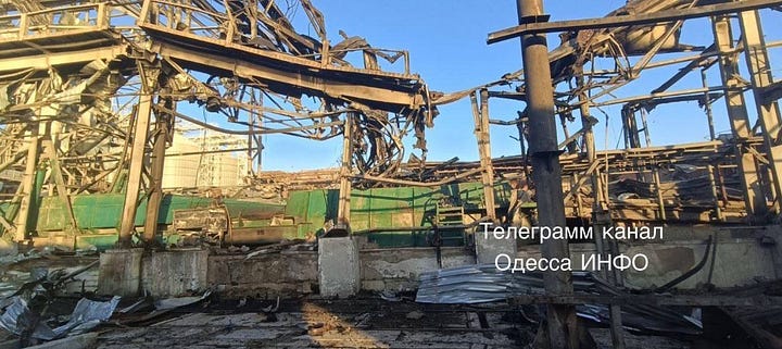 Of course it can be said that Ukraine’s effort is certainly not a flimsy one. They’ve scored outsize successes, however much to their detriment I fear all they’ve done is ‘stirred the hornet’s nest’ and caused the Russian MOD to concentrate on a part of the theater they had been lax about in recent times. Now a huge series of devastating blows are being dealt to any and all Ukrainian assets that have even a farthing to do with this recent campaign. On top of the hotel and adjacent warehouses, Odessa’s ports also suffered major blows to various (possibly grain related) infrastructure: