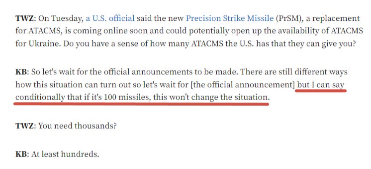 Secondly, you can read this and laugh. The announced small test batch of ATACMS to be sent to Ukraine will reportedly be only around ~60 units: