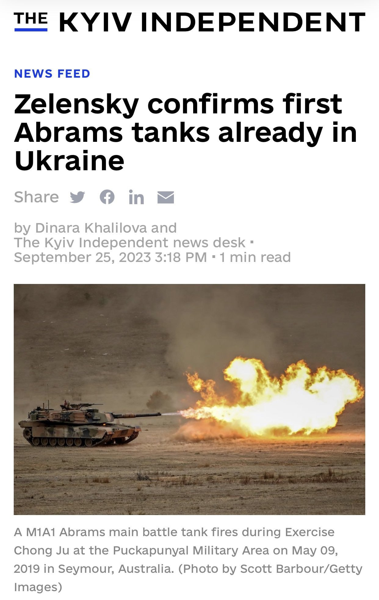 The above are the Swedish modified variants of German Leopard 2A5s. A few of them were already destroyed in a single day the day before yesterday, which represented a huge chunk of all those received. Now the first 10 or so Abrams samples are said to have arrived: