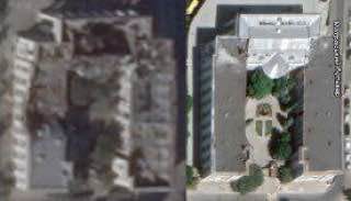 Before and after satellite imagery of yesterday's AFU Storm Shadow missile strike on the Russian Navy command post north of occupied Verkhnosadove, Crimea (44.714735, 33.704408).