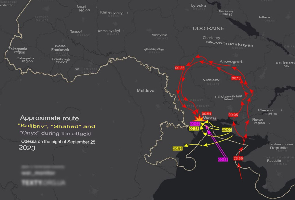 The second from last night. They claim the Kalibr and Onyx missiles fired from Crimea region did a full circle around Nikolayev oblast and then came to hit Odessa from the rear where AD wouldn’t expect to be pointed:
