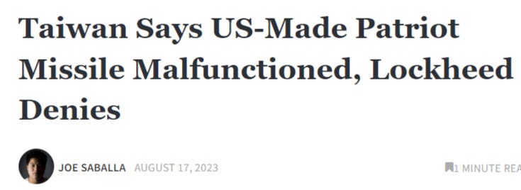 Ultimately, despite whatever failures Russia may be incurring, we mustn’t forget that U.S.’s air defense capabilities are far worse. Just a few weeks ago a new report from Taiwan complained how their Patriot system recently malfunctioned during tests: