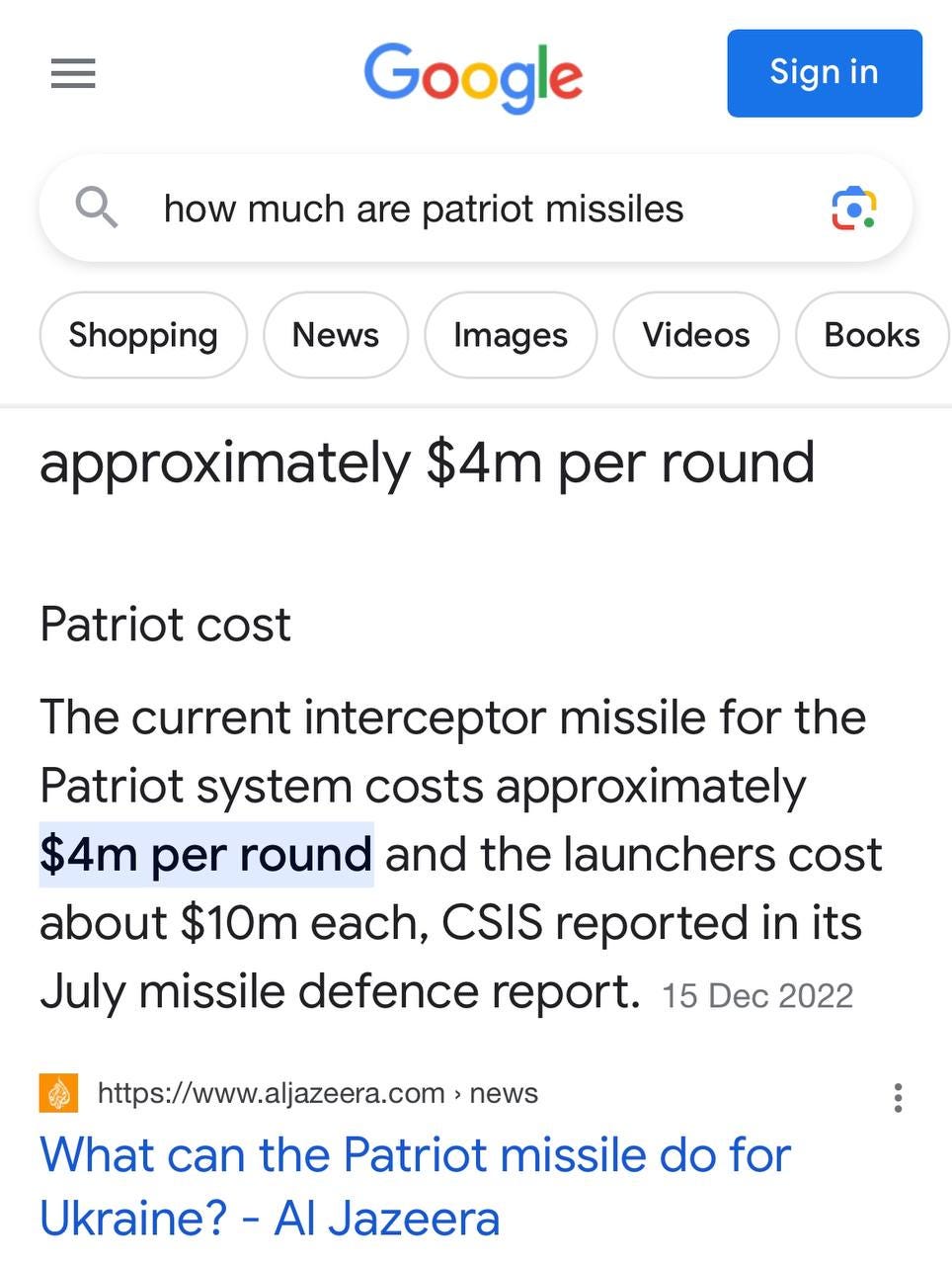In the recent Khmelnitsky strikes, Russia was said to have destroyed hundreds of millions of Patriot missile ammo as well, so the two events combined should be fairly devastating to the AFU, particularly given the prices involved: