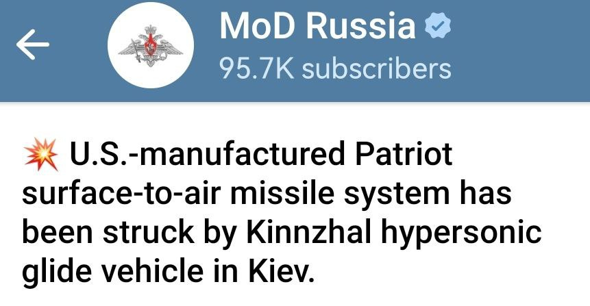 So what do we know about the actual results of the Kinzhal strikes? The Pentagon has now officially admitted to one Patriot being ‘damaged’, but they claim that it’s reparable on site. They made this interesting admission: