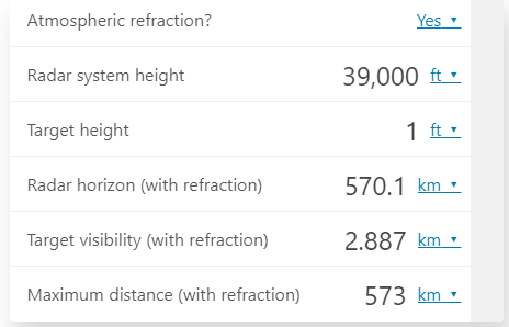 The final and most useful method is AWACs. A Russian A-50U can fly comfortably deep in Russia’s border north of Kiev and still get a powerful reading from its rotodome radar. AWACs can have 400-600km+ range, though that’s for higher flying objects. The Russian border is only 80km north of Kiev. A basic calculation for radar horizon from this site gives us the following figure: