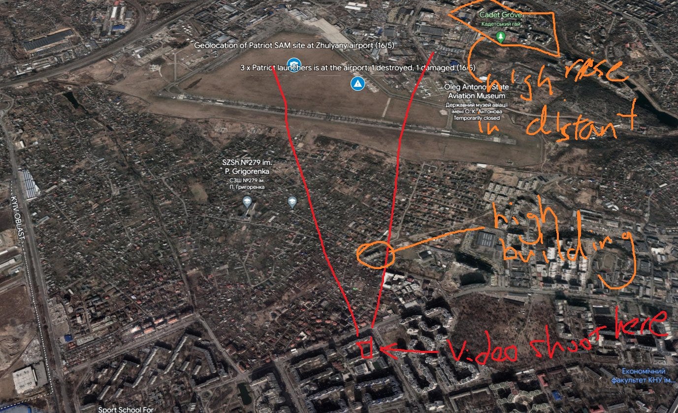 This leaves only a few real, solid choices where you can put such a system. And they are almost always put in airports, as an example. It comes as no surprise then that during the attacks on 5/16, word now has it that two of the Patriots were located at Zhuliany airport in Kiev and one at or near the Zoo, as per the following from Rybar: