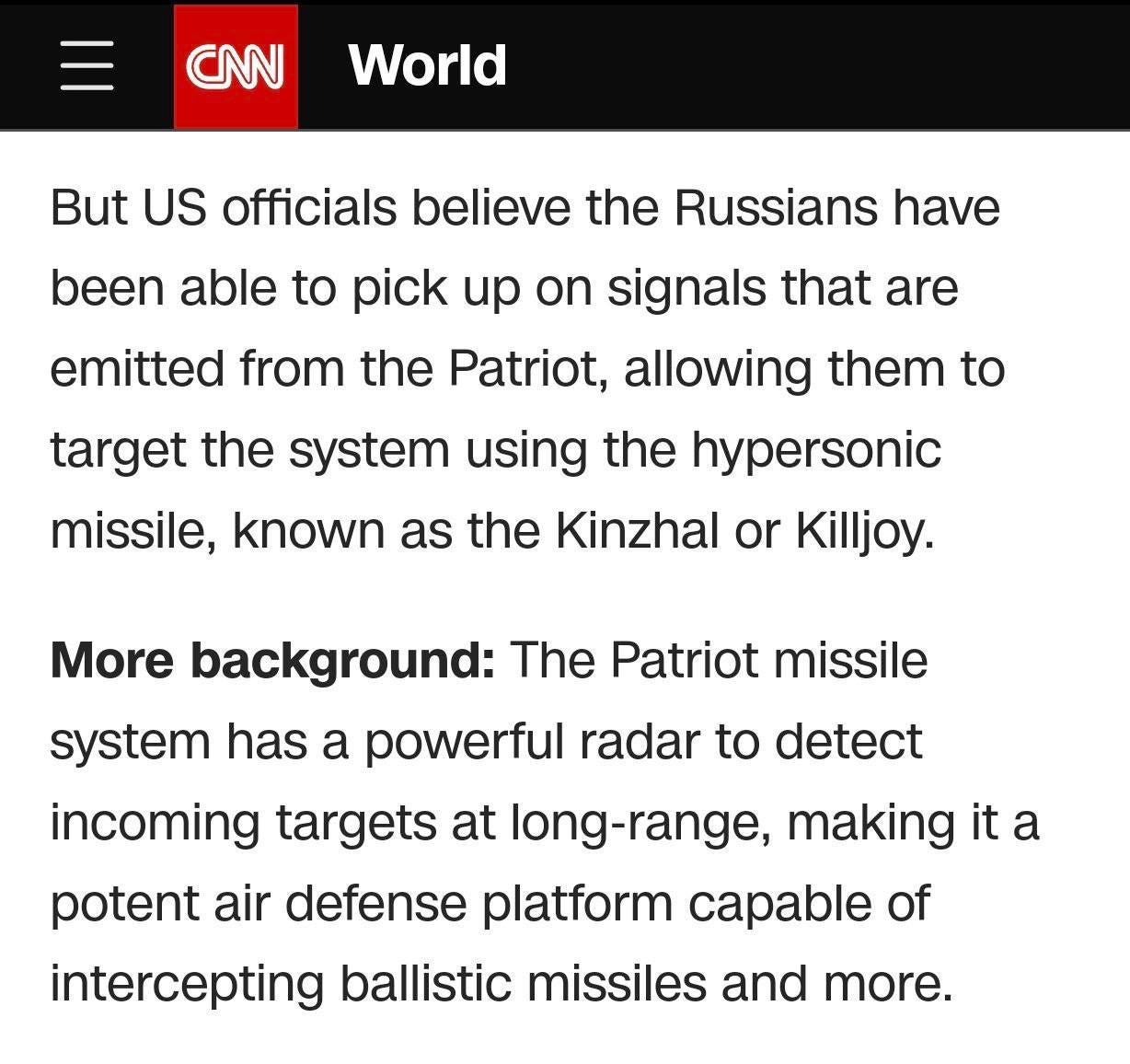 So they admit that Russian signal gathering which I described earlier did in fact allow Russia to track the Patriot system and hit it.