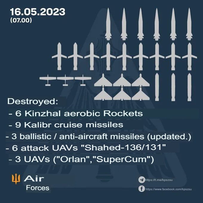 In the meantime though, we are entering the stage of late May which the Pentagon leaks marked as the latest, final period towards which Ukrainian AD ammo would last. S-300 and NASAMs were specifically marked as depleted by May 2023. So we’ll see how well the new deliveries can shore up Ukrainian defenses.