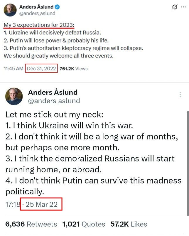 And how can we forget the illustrious Anders Aslund, who’s been famously predicting Russia’s collapse from as far back as the ‘90s.