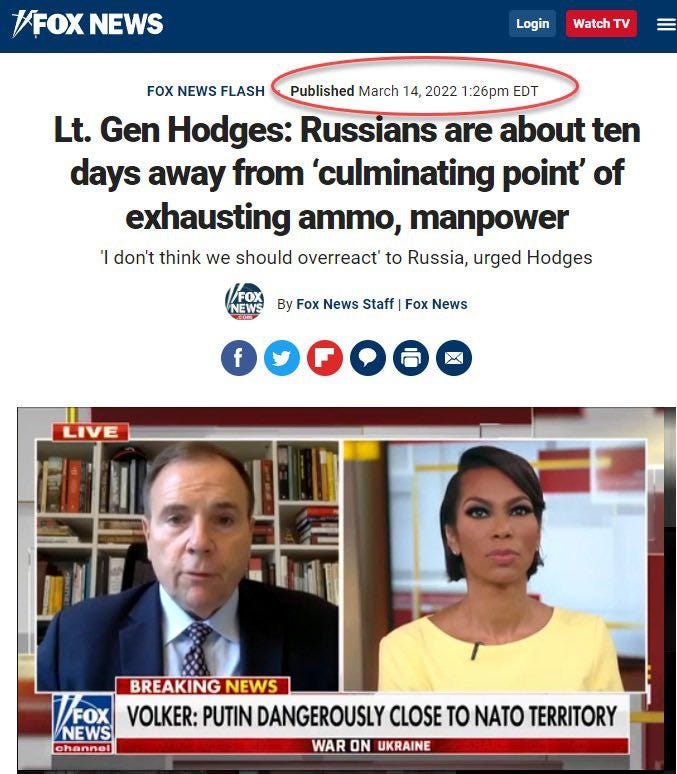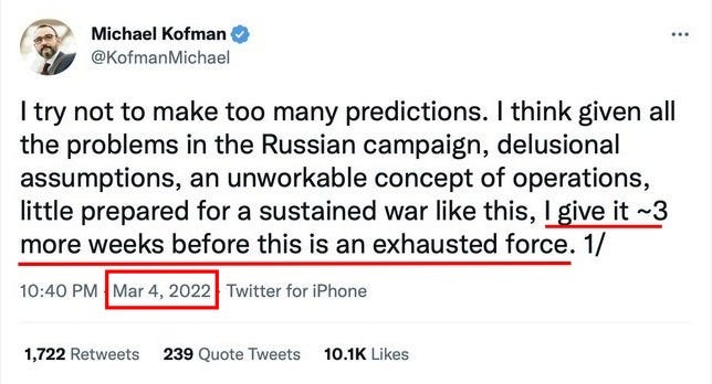 Recall, for instance, the prophecies of one of the West’s most revered military ‘analysts’ from the very onset of the war: