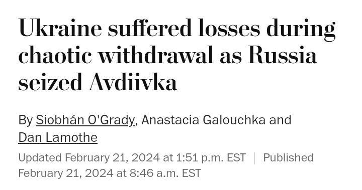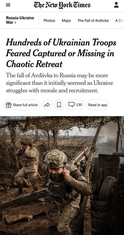 A lot of revealing things have come to light in the continuing coverage of the Avdeevka denouement. For the first time, the U.S. mouthpiece was forced to acknowledge Russia is having success: