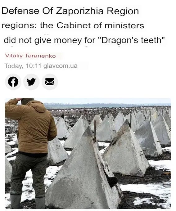 Lastly, recall my recent argument: even if Ukraine were to get enough men and arms for a new offensive, where could it possibly take place? Russia has fortified the Surovikin line to an even greater impenetrability than the first one which totally wiped the AFU. Zelensky, for his part, continues to maintain that they will mount a new offensive eventually, and other recent statements of his claimed that Ukraine will capture Crimea with a mass amphibious assault—these are wild delusions.