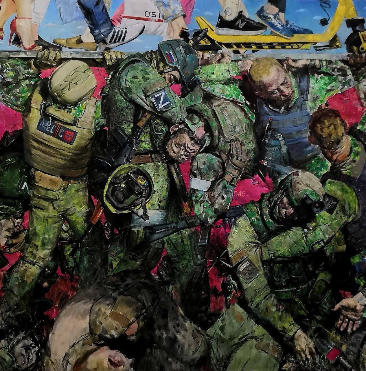 Lastly, in light of the pipeline story above, I’ll leave you with this striking painting posted by one of the official Russian VDV channels, which signifies the sacrifice of the Russian troops, who, Atlas-like, struggle beneath the indifferent tread of society, whom they bear up with all their worldly strength: