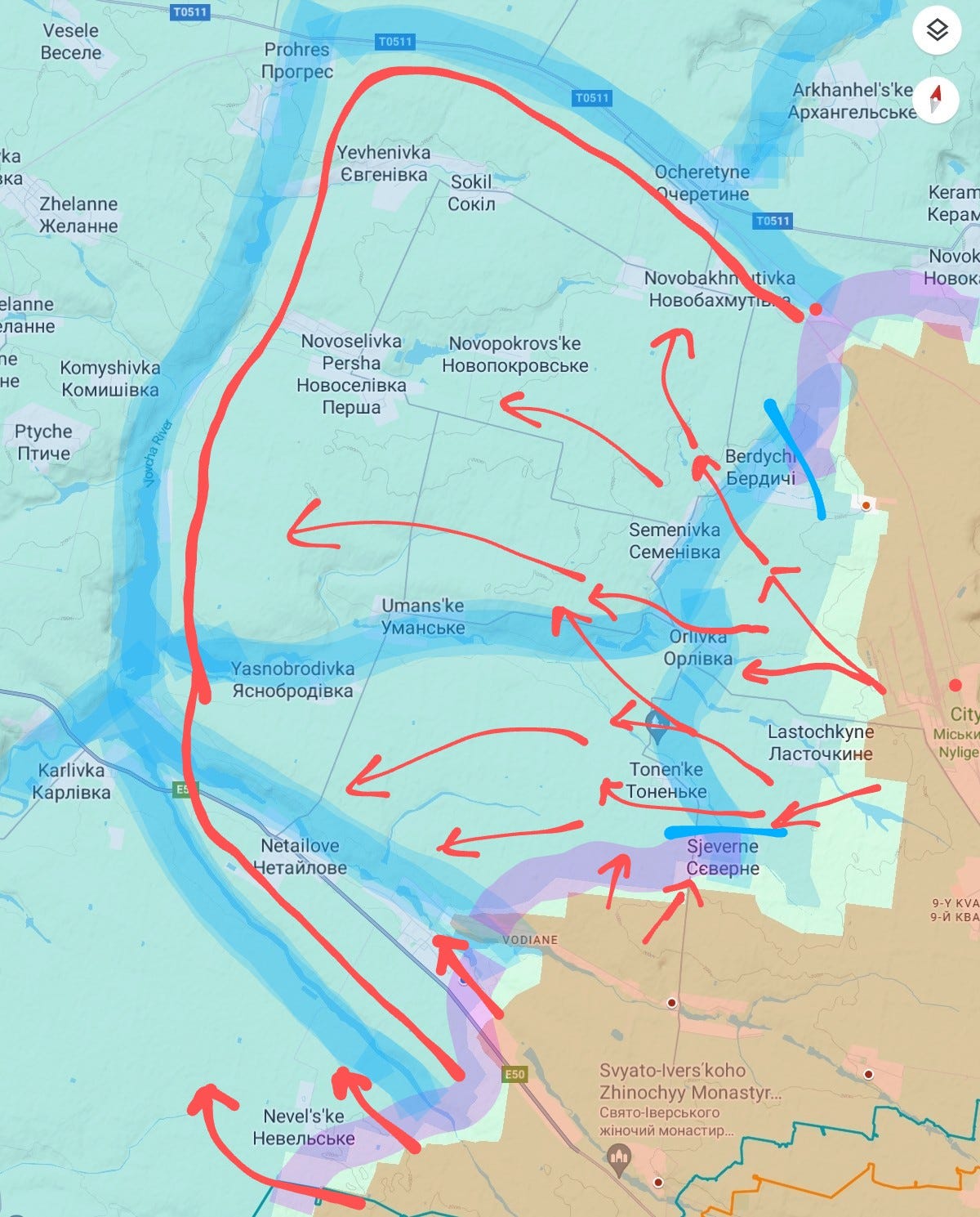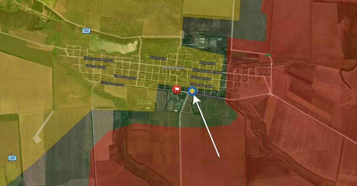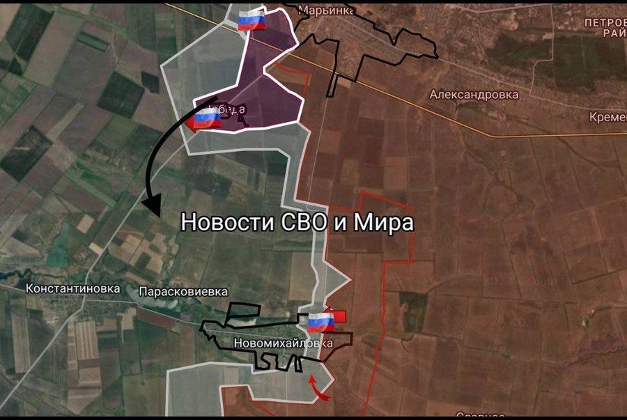 It’s more important than it looks because it begins putting the strategic town of Novomikhailovka in a cauldron, as seen below: