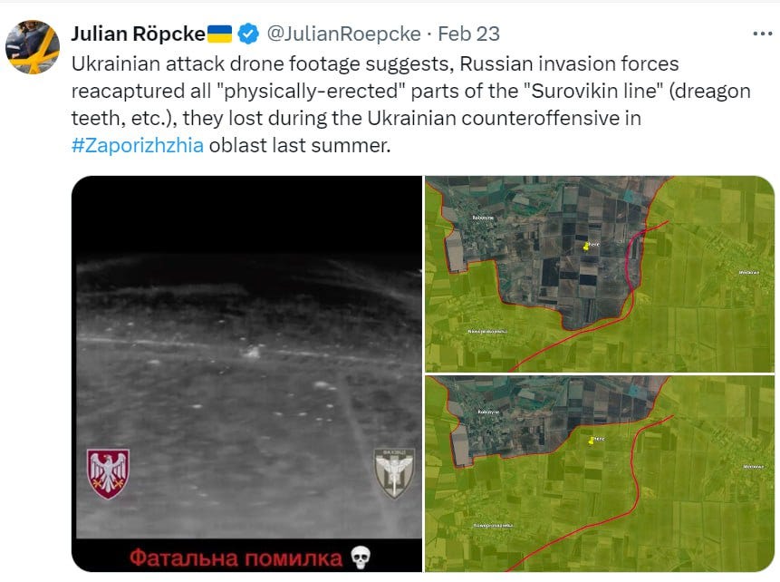 Read above: ‘the goal of splitting Russian forces at Melitopol’—so again, another attempt through the Surovikin line. It’s beyond comically absurd, particularly given the news that Russia just recaptured Rabotino and all lost territory near Verbove, taking AFU virtually to the starting line of June 2023.