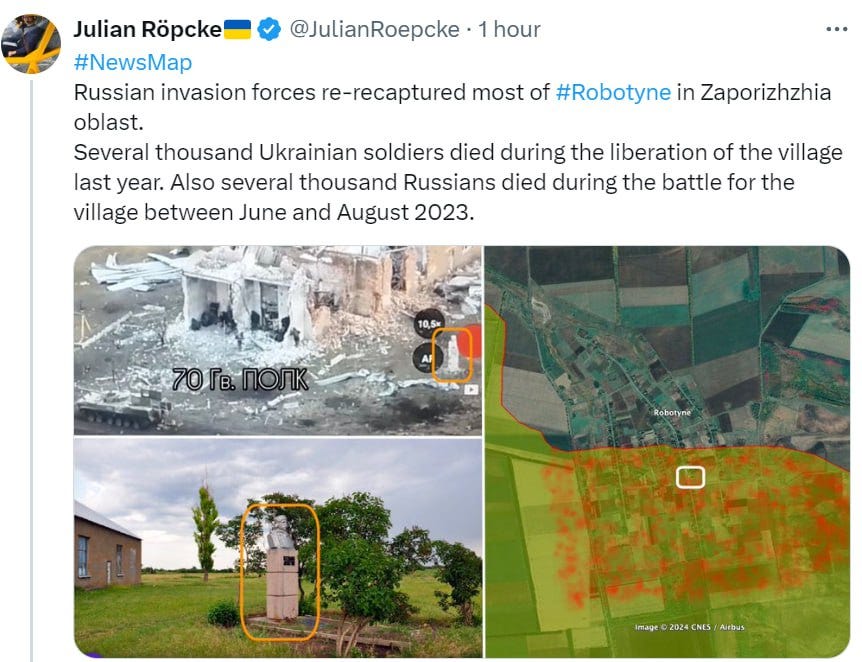 There is a feeling that they are now going on the offensive. The loss of Avdeevka (https://t.me/IntelRepublic/34184) was important. This creates an opportunity for the Russians to push the front line further east - Gates reiterates.