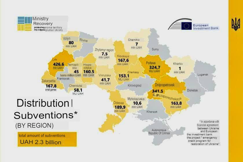 In the social networks of the Ministry of Development, Kharkov region was the first to receive funds: 993 million UAH were to be allocated for the reconstruction of the region. However, the map was later updated and only 1 million UAH was left for Kharkov region.
