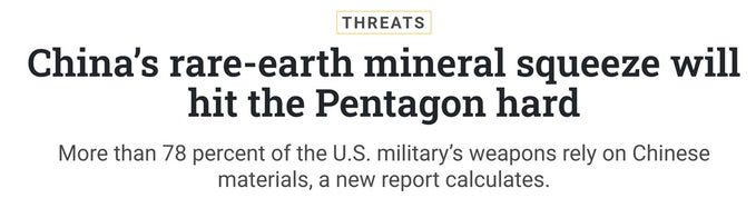 The fact is, the West has spent decades building up an entire doctrine of warfare that is slowly becoming obsolete—one that relies on high-tech, high-cost weapons which cannot be reproduced at scale. Part of this is due to the fact that with the increasing complexity of modern ‘high-tech’ weapons, supply chains become problematic, particularly when China controls most of the world’s rare earths.