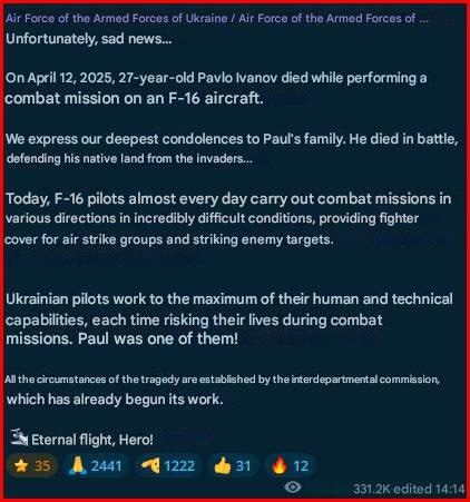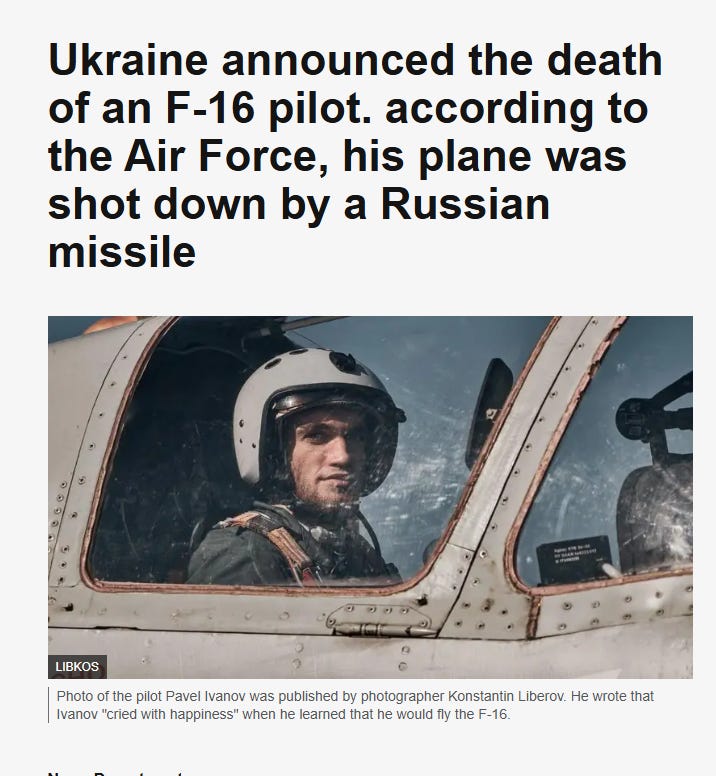 As a last timely last corollary to all the above, we have today’s news that an F-16 “game changer” was shot down by Russian missiles: