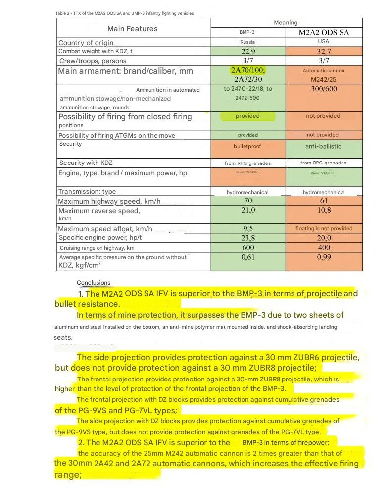 However most pro-UA rejoicers glossed over the report’s statement that the BMP-3’s overall firepower was greater than the Bradley’s, given its additional 100mm cannon and ability to fire ATGM missiles on the move, which the Bradley cannot do.