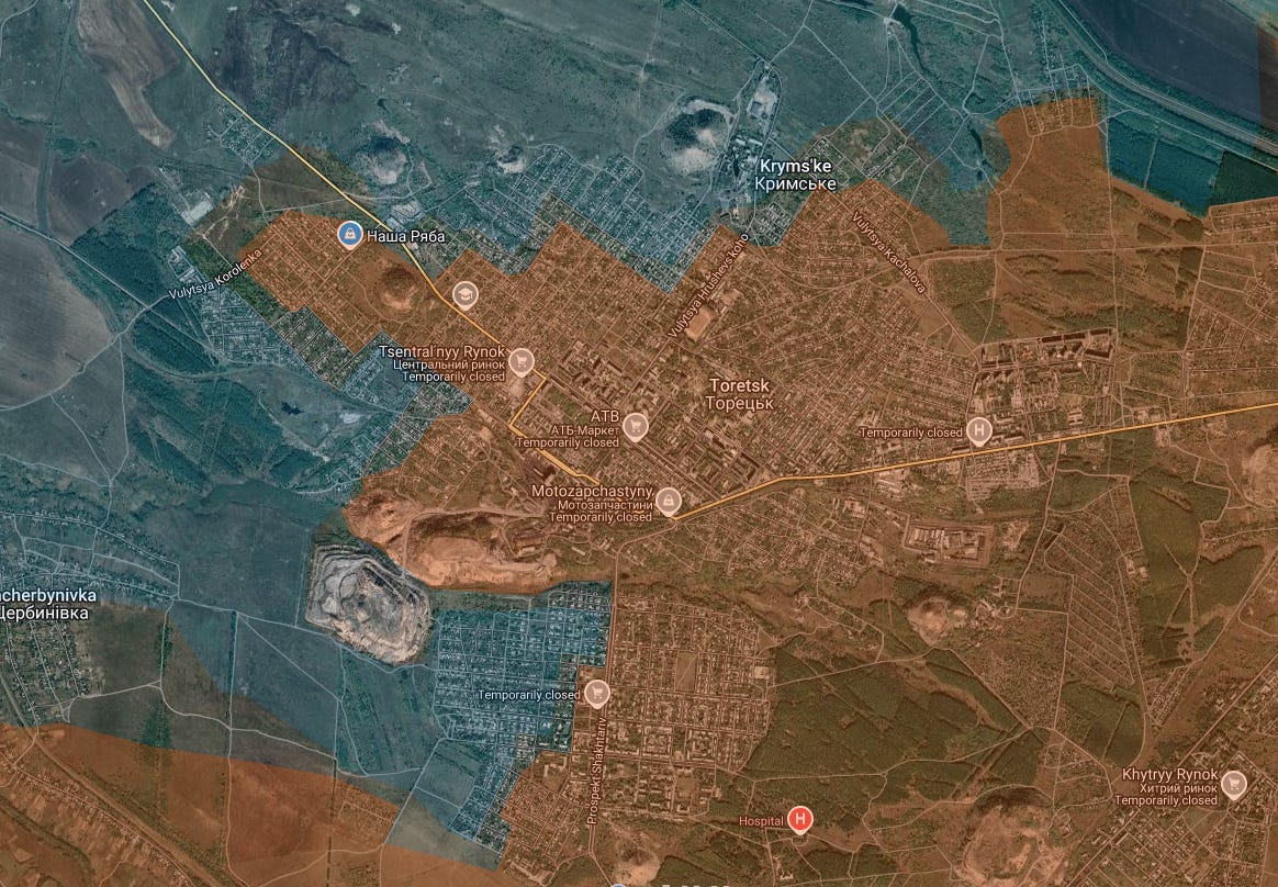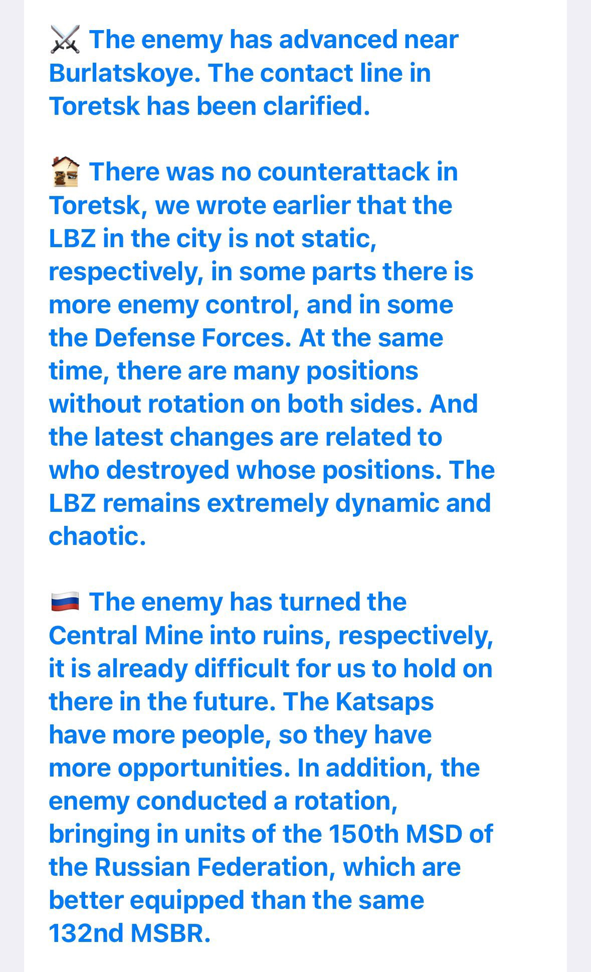▪️In Toretsk, where Ukrainian units have won back many positions over the last couple weeks, Russians went back on the offensive, and are in the process of recapturing it all. In reality, it turned out much of the northern half of the city was in a gray zone, which was merely recaptured by AFU. I had suggested that Zelensky used Toretsk as a deflection from the Kursk disaster, sending units to capture a large gray zone for PR, and that now seems to be the case, given that Toretsk is falling apart as soon as Kursk was lost.