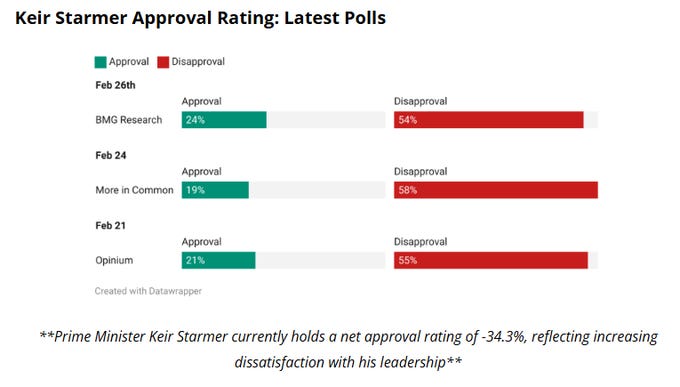 Starmer is shaping up to be the worst prime minister in the history of the UK. I mean he has stiff competition to be the worst PM, Truss, Sunak, BoJo, Cameron, Gordon Brown, but seems to be winning.