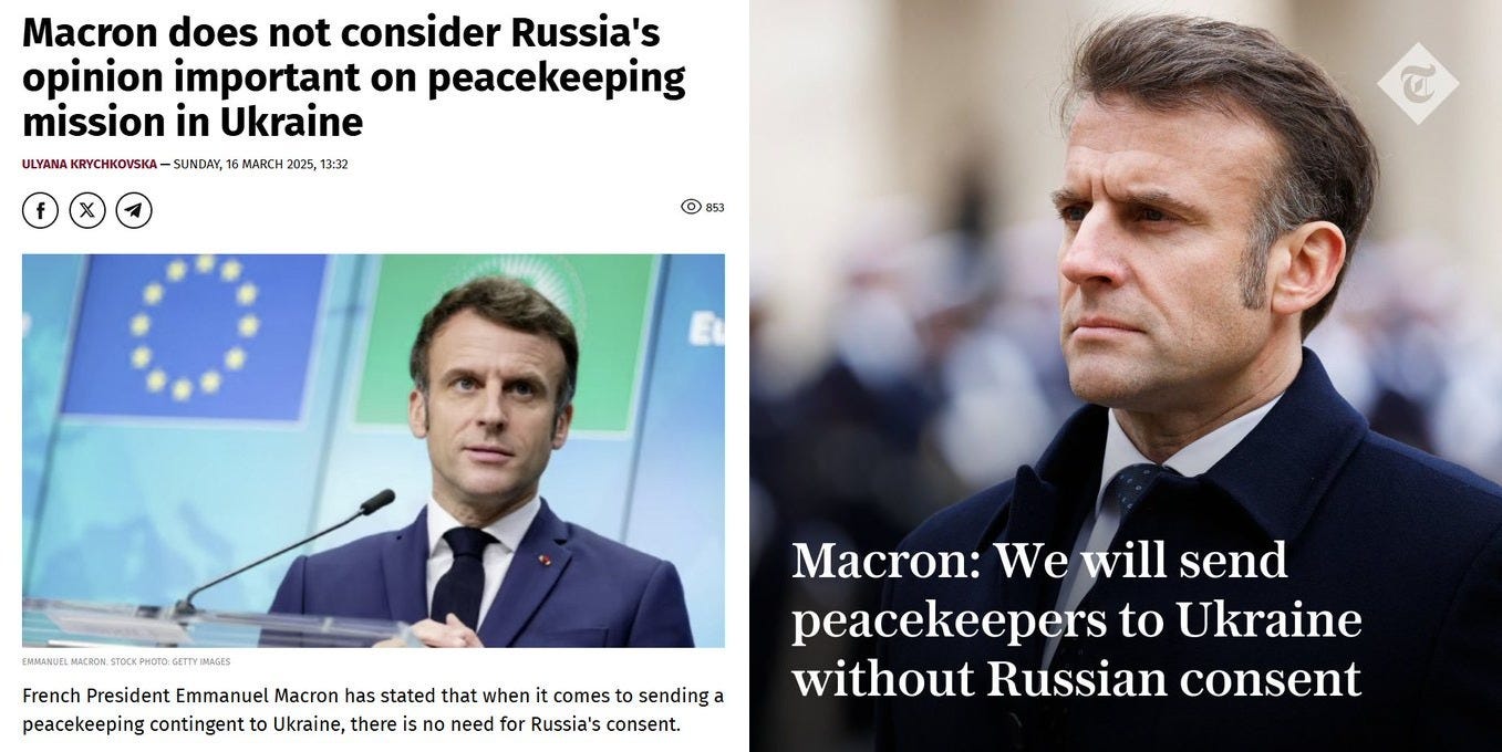 Macron: "Ukraine is a sovereign country. If it asks for allied troops to be present on its territory, it is not up to Russia to decide whether to agree or not,"