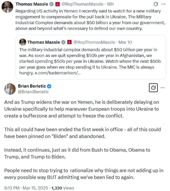 Not one nation thus far has even logically explained what the purpose of the “30-day ceasefire” is. Does anyone know, or even care to pretend at knowing? In Gaza, at least, such things followed a practical line, with thousands of civilians trapped and without food. In Ukraine, the only ones currently trapped are alleged to be thousands of Ukrainian troops somewhere in Kursk, which again implies the ceasefire’s purpose is to save Ukraine.