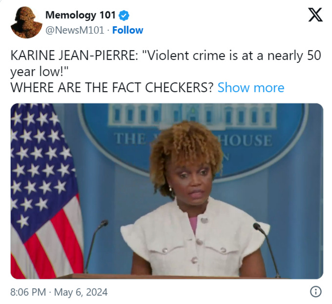 Granted, that won’t stop them completely—and in fact, there have already been statements from the White House that “no change” will be made in their rhetoric. Here’s Karine Jean-Pierre expressing just that, as tactfully as her duplicity would allow: