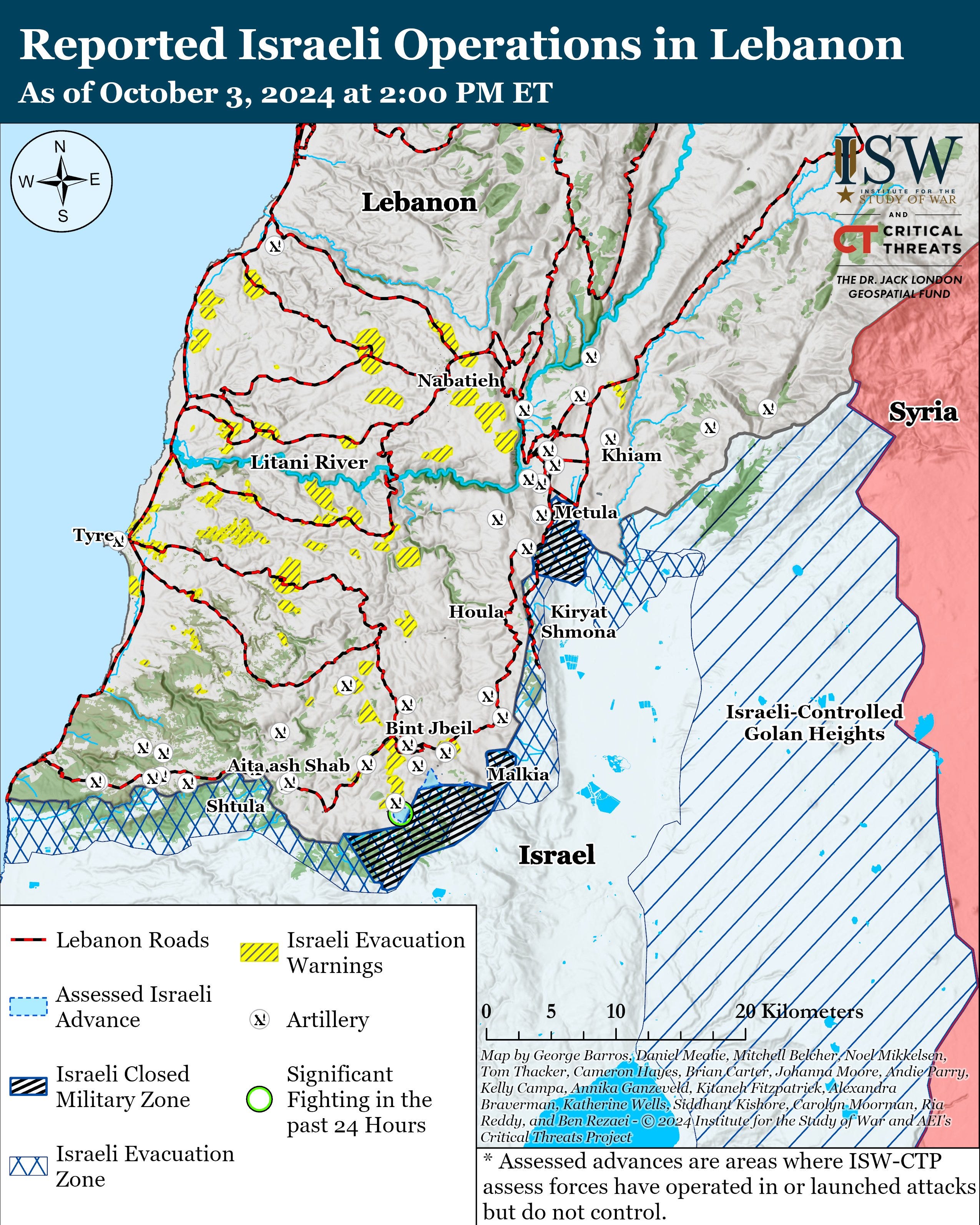 As for that new Lebanese campaign, ISW and other sources claim the IDF has made marginal advances into southern Lebanon in a pincer-like motion from Upper Galilee and the northeastern Galilee Panhandle region:
