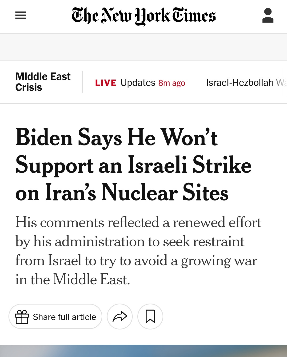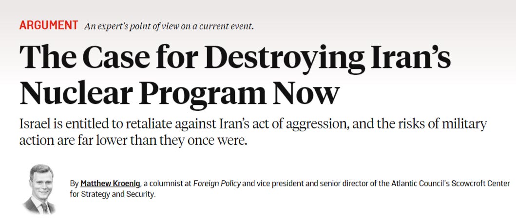 1. If Israel escalates, Iran can and likely will destroy Israel as a functioning nation state. That is a rock solid, 100% guaranteed outcome.