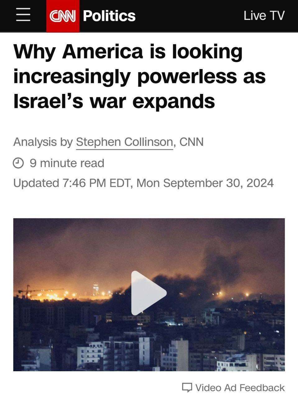 It’s not looking good so far, with photos claiming to show knocked out Merkavas and Hezbollah’s claims that dozens of IDF have already been eliminated with hardly any territory captured. At this pace, Israel will understandably need to ‘divert’ again to a big US-led strike campaign against Iran to paste over and memory-hole what may turn out to be another huge failure in Lebanon.