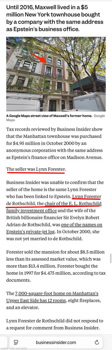 In fact, Epstein’s famous Upper Eastside mansion in Manhattan was allegedly purchased for him by the Rockefellers, according to Whitney Webb’s research. Ghislaine Maxwell herself purchased her NYC estate from none other than…Lynn Forester de Rothschild: