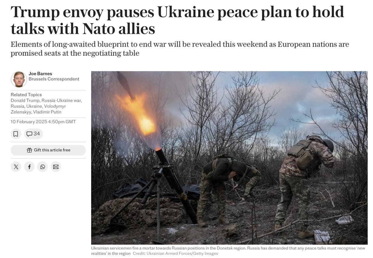 If anything, Trump just walked back his plans of ending the war swiftly after announcing that no ‘peace plan’ would be presented at the upcoming Munich conference, but rather instead Hegseth and Kellogg would be sent to “listen to what European partners have to say” before the US presumes to finalize any kind of plan.