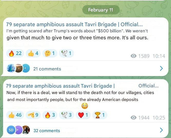 "At the same time he again focused on the minerals, which began to quickly signal that Trump appears intent only on extracting recompense from Ukraine for the alleged hundreds of billions that the US gave them. The message seemed clear: Trump doesn’t care what happens to Ukraine as long as he gets his compensation."