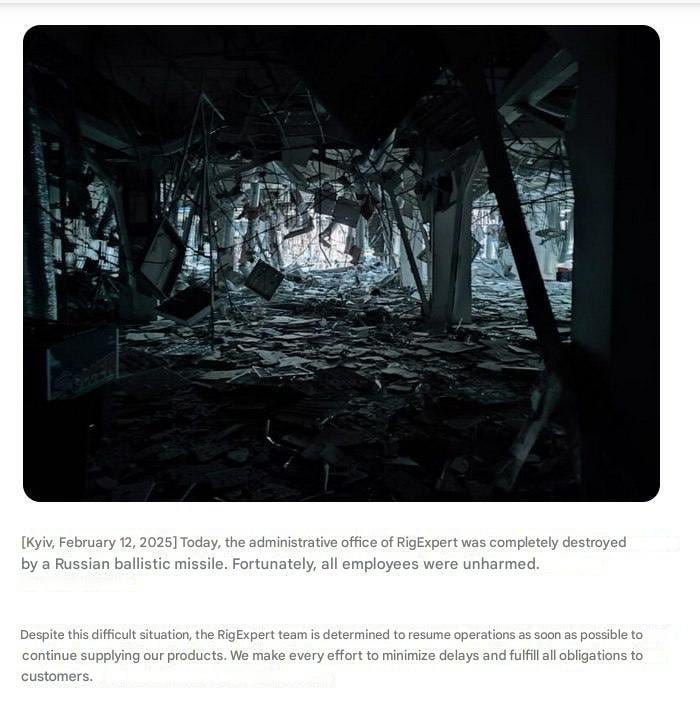 The office of RigExpert, a company that produces antenna and cable analyzers for the military, was destroyed by the Russian nighttime missile attack.