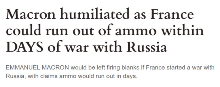 On that note, there’s one brief topic I wanted to cover and clear up. When Macron launched into his cringeworthy performance, the reasoning he used behind the bravado of sending troops against Russia was that “France is a nuclear power” and thus has nothing to worry about from Russia. This was followed by many French cheerleading responses on social media that highlighted France’s impressive 4th rank in world nuclear powers, after Russia, U.S., and China. France has ~300 nuclear weapons which, they say, is enough to “destroy Russia” though not the whole world.