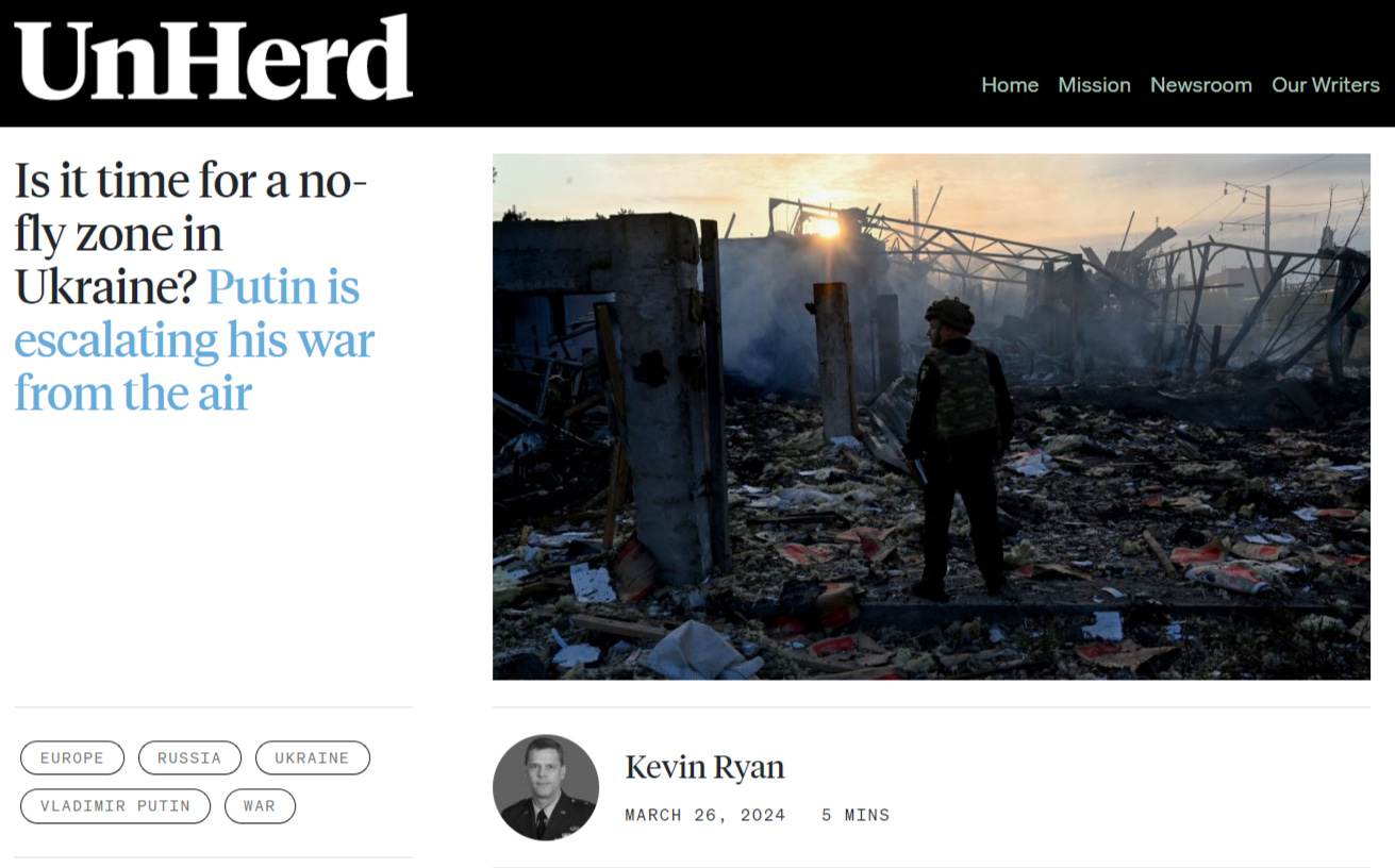 The article sneakily disguises a call for NATO to assume control of everything West of the Dnieper River by couching it as merely providing air cover. The author thinks NATO should defend all Ukrainian cities west of the Dnieper with actual NATO troops and air defense systems. He argues this isn’t much of a threat to Russia as they would only be shooting down Russian missiles and unmanned systems and not killing Russian pilots, who do not stray beyond the Dnieper.
