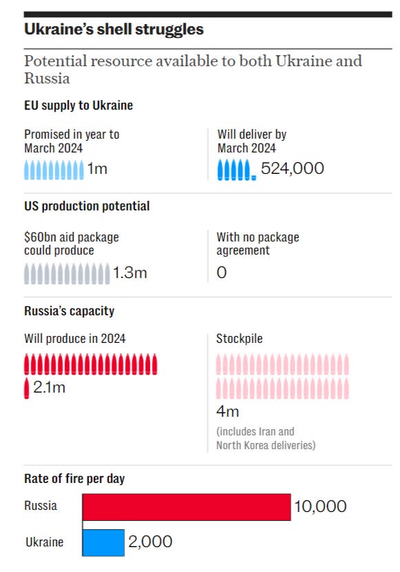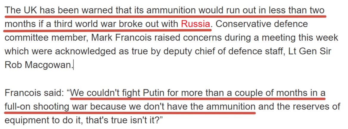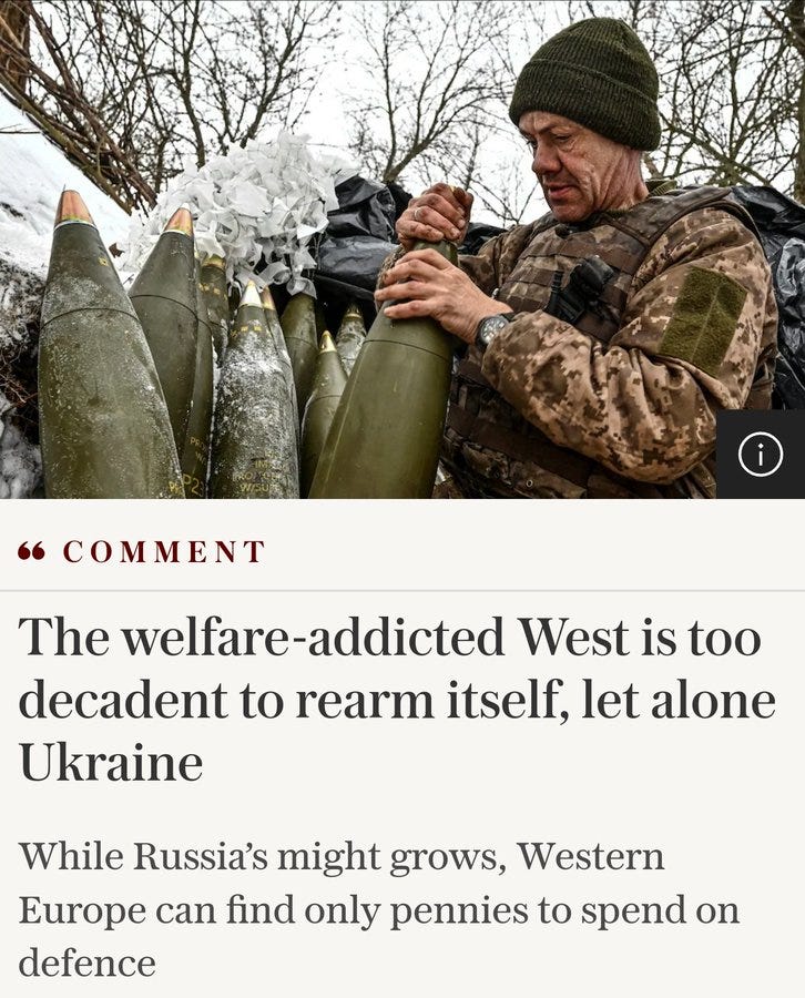 There’s one interesting observation about the above, second article, from which I posted the artillery shell graphic. It notes how the West is unable to ignite the manufacturing prowess necessary to compete with Russia.