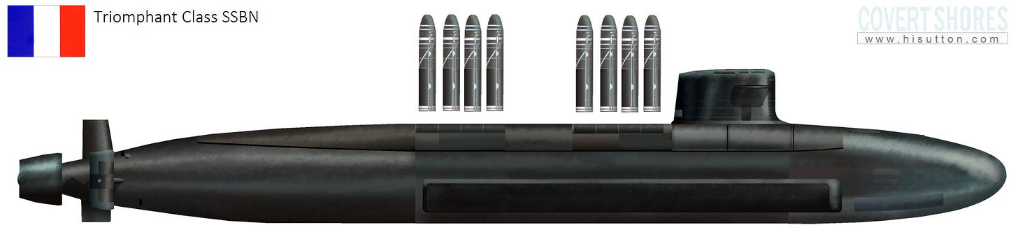 You see, in the 70s and 80s, France totally scrapped the ground component of its nuclear triad—i.e. siloed ICBMs. It now has only the ballistic submarine and limited air component, the latter of which is not even worth talking about as it is a small amount of ASMP-A nuclear cruise missiles, with limited range (~300km), launched by Dassault Rafale jets. There is very little chance such a jet could even get close to Russian air defenses, much less hit any important Russian cities or sites with such a short-ranged missile, so this poses very little threat beyond the frontline-tactical, and can be discounted for the sake of this discussion.
