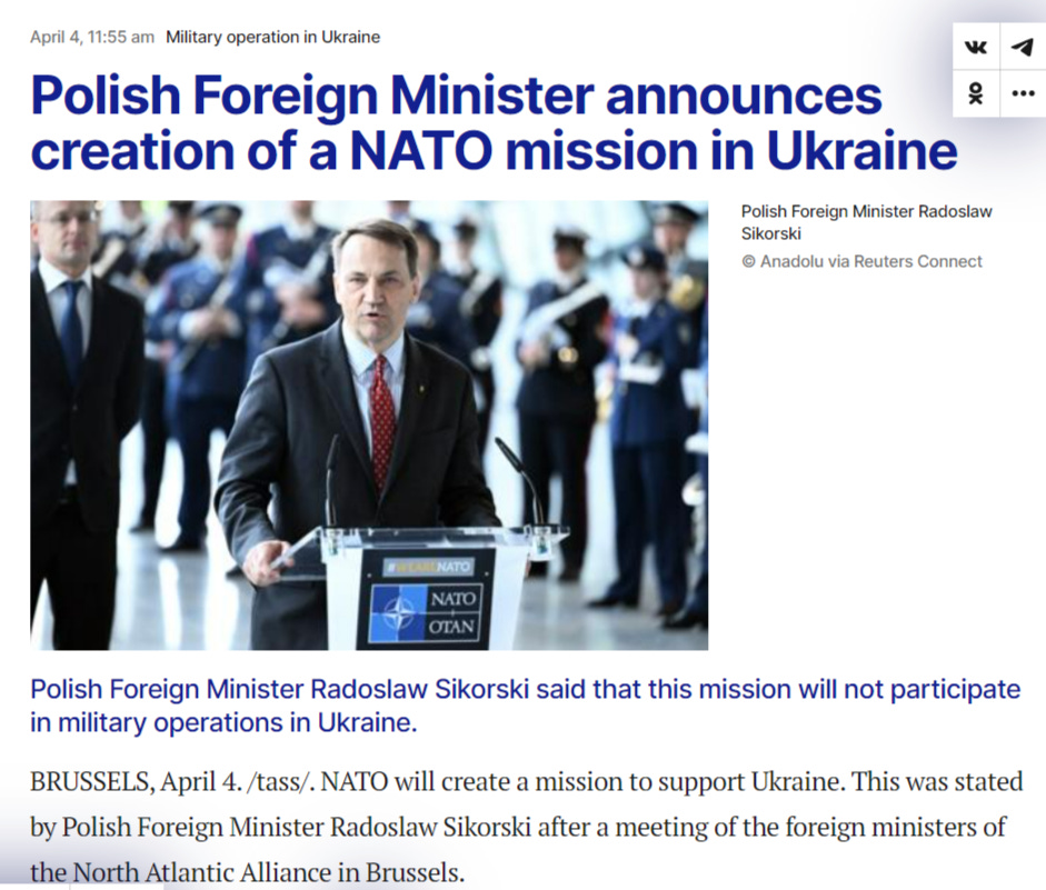Two days ago Poland’s foreign minister Sikorski stated that NATO would establish an official “mission” in Ukraine: