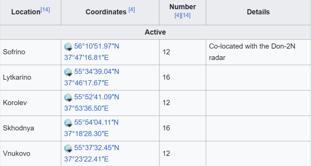 By the way, Russia used to have far more, about 21 total sites instead of 5 but the longer range 51T6 missile component of the A-135 system was dismantled in the 2000s. However in the future they will again likely expand it with the new systems in the pipeline—though even the current amount is still much more than U.S. has in equivalent, which is a total of 44 interceptors.