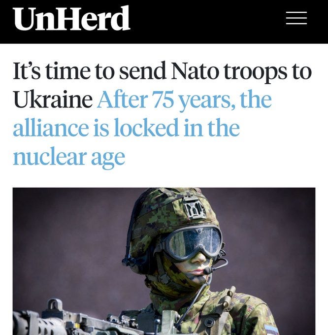 Second — NATO forces would face not only defeat on the ground — in UKR — but storied debacle as well. Escalation here inevitably leads to a greater and more historically degrading defeat than simply letting UKR make peace on RUS terms.