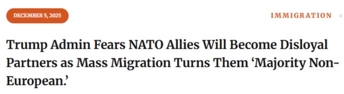 Most interesting in the above is the mention of one particular aspect of Trump’s new document, which essentially reframes US’s waning support for Europe as a backlash against Europe’s continued policy of erasure of its own peoples and cultures.