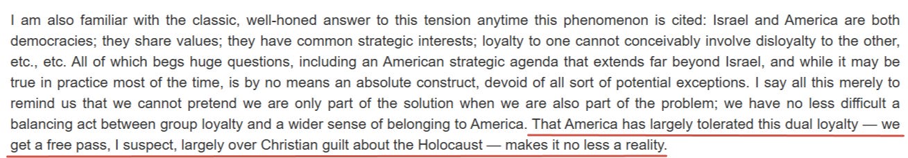 A self-admission of the truth about Jews - that they are the most privileged and powerful of white Americans? If they are so privileged and so powerful, how can they possibly claim to be victims of discrimination? But we who are full of 'guilt' over the so-called 'Holocaust' can not seem to connect the dots, can we? They claim israel and the US are allies and support each other, but I have never seen for myself in all my years where israel has ever supported the USA, or any other country for that matter. However, I have seen on multiple occasions where israel has acted against the US - the attack on the Liberty, JFK, RFK, 9/11, getting America into Middle East wars, stolen security secrets, lies, deceptions, etc. That country is not an ally - it is a calloused parasite living off its host, the Western Alliance, and inflicting harm on any country, including and especially the US, that it believes crosses it for any reason.