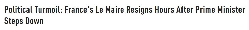 In France, after the resignation of French PM Lecornu, the Minister of the Armed Forces Bruno Lemaire followed suit: