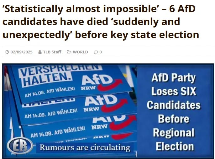 Meanwhile in Germany, seven AfD candidates for elections reportedly died in a two-week span: